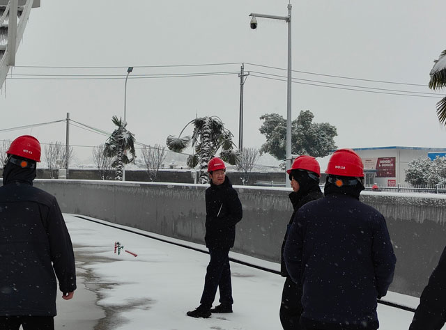 开展雪灾天气安全隐患排查。为积极应对暴雪天气,2月3日一早,公司董事长张汉宜便对应急防范工作做出具体安排,要求公司项目管理人员、网格员值班人员提高安全防范意识,加强库区巡查,强化安全管理。2月4日,随暴雪影响逐步增大,公司立即启动应急预案,两个库区值守人员进行铲冰扫雪,开辟防滑通道;仓储、综合部门顶风冒雪检查仓储设施,督查项目建设,整改安全隐患。尤其是阳逻库区项目施工正处于攻坚期,部分项目已开挖的道路、开槽的墙体、暴露的光纤均存在重大安全隐患,阳逻库同志立刻响应、细致检查、设立警戒线、督促施工方做好防护,多管齐下,多措并举,确保了阳逻库区安全生产。